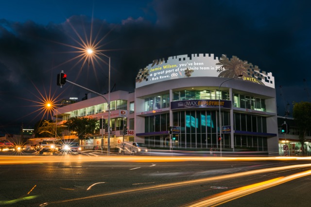 The campaign, which will run through December, sees Unita CEO Rob Rowe using one of Brisbane’s most premium billboard sites to celebrate the hard work of his team after a busy year.